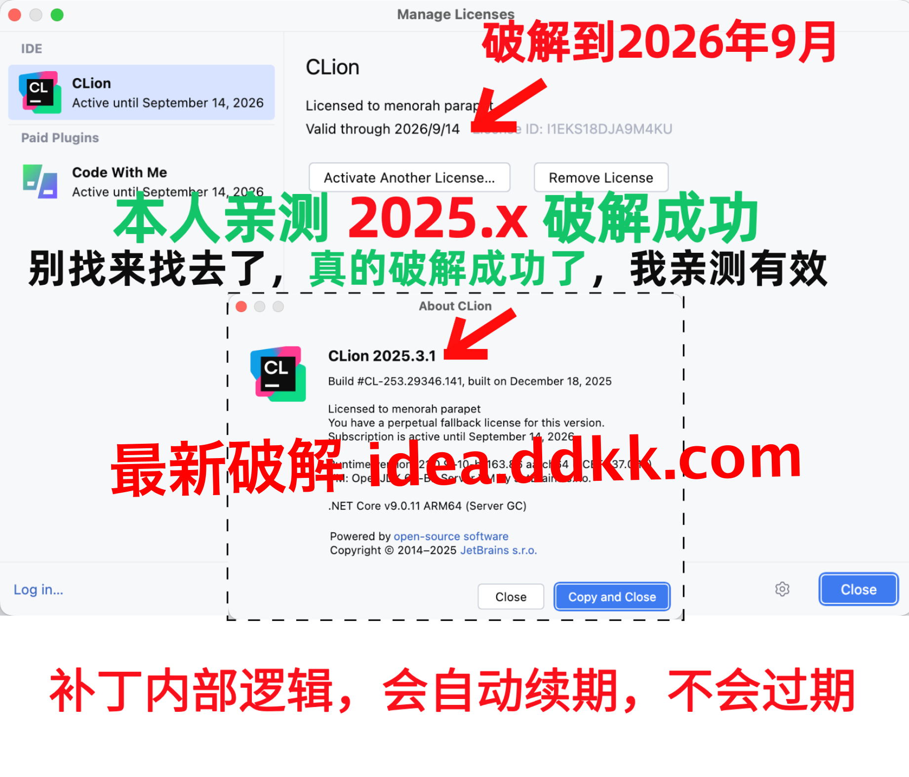 CLion 2025.3.1 破解补丁,不要移动位置,不要删除【否则破解失败】