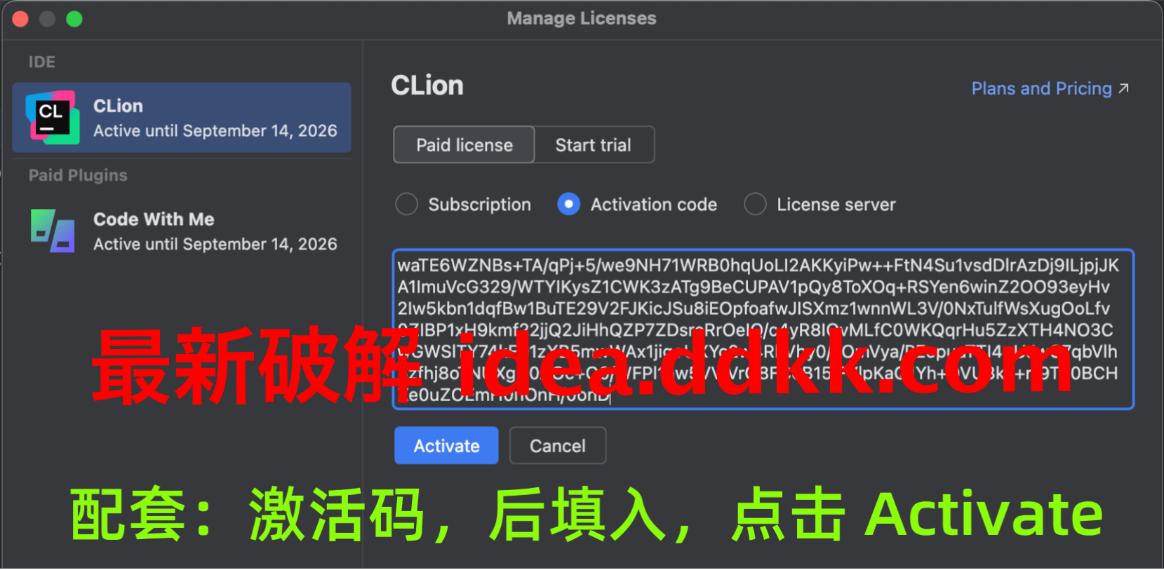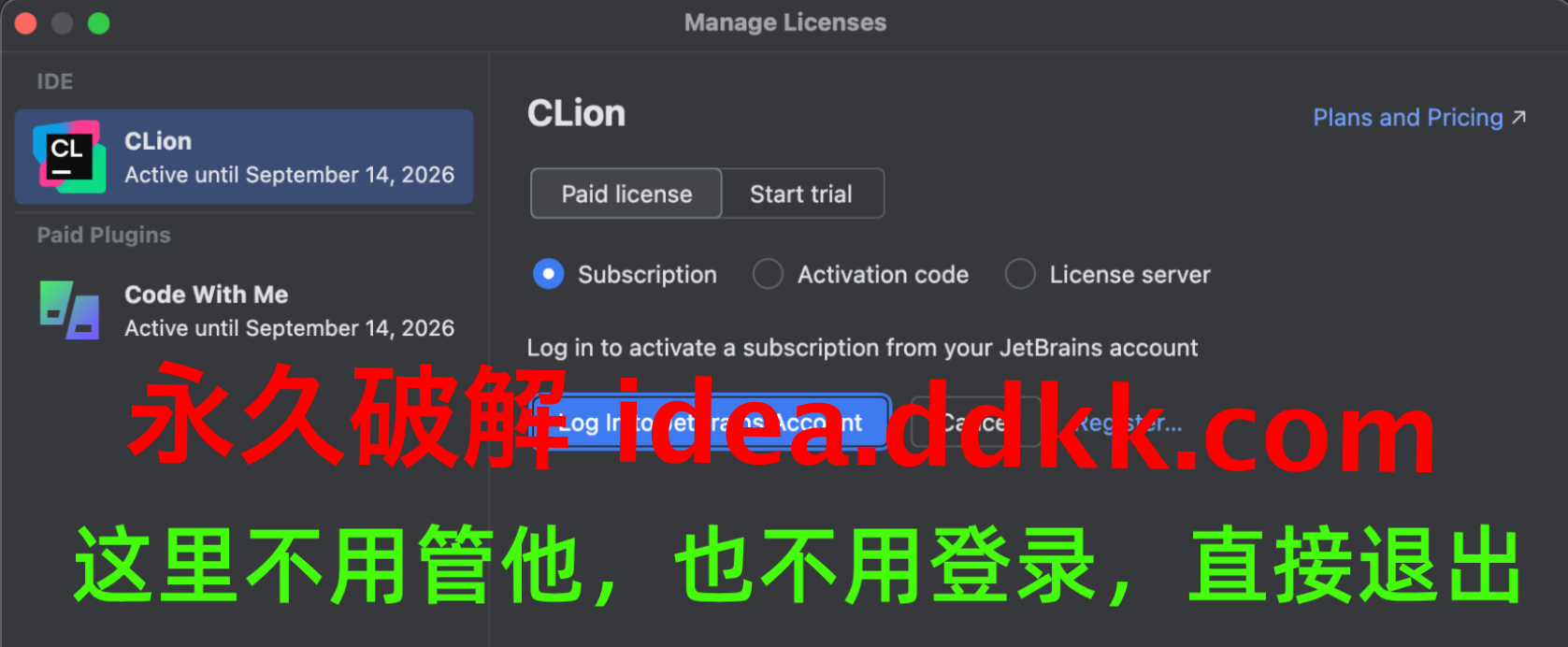 Jetbrains每个产品对应的激活码都不一样,CLion要用专门的激活码