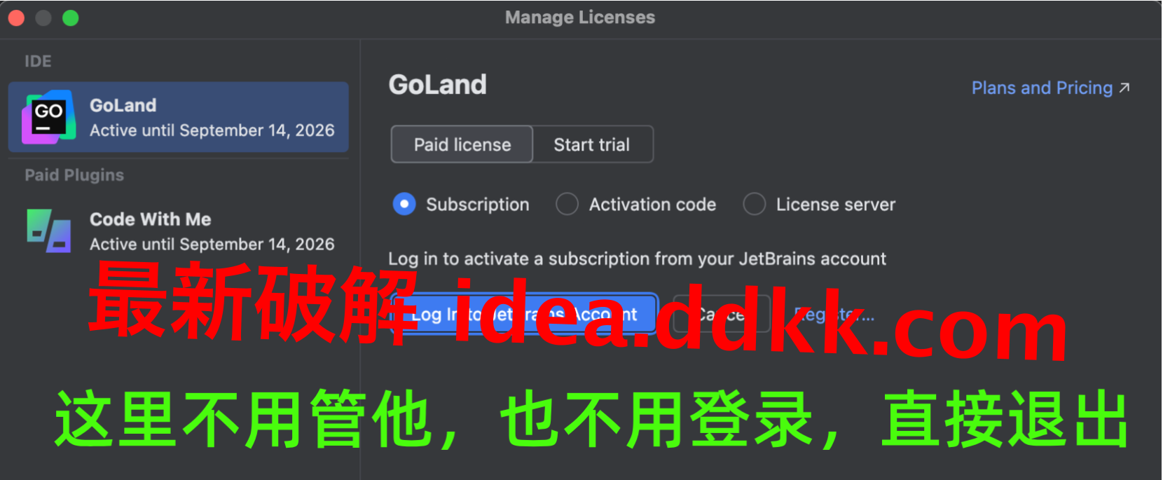 DataGrip按装好之后,第一次启动会弹出登录界面,让你登录JetBrains账号;这时候千万别手快直接登录,先退出