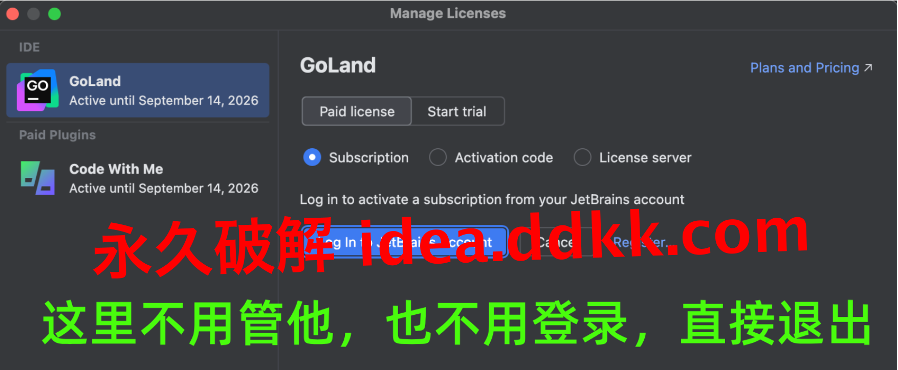 Jetbrains 每个产品,对应激活码都不一样