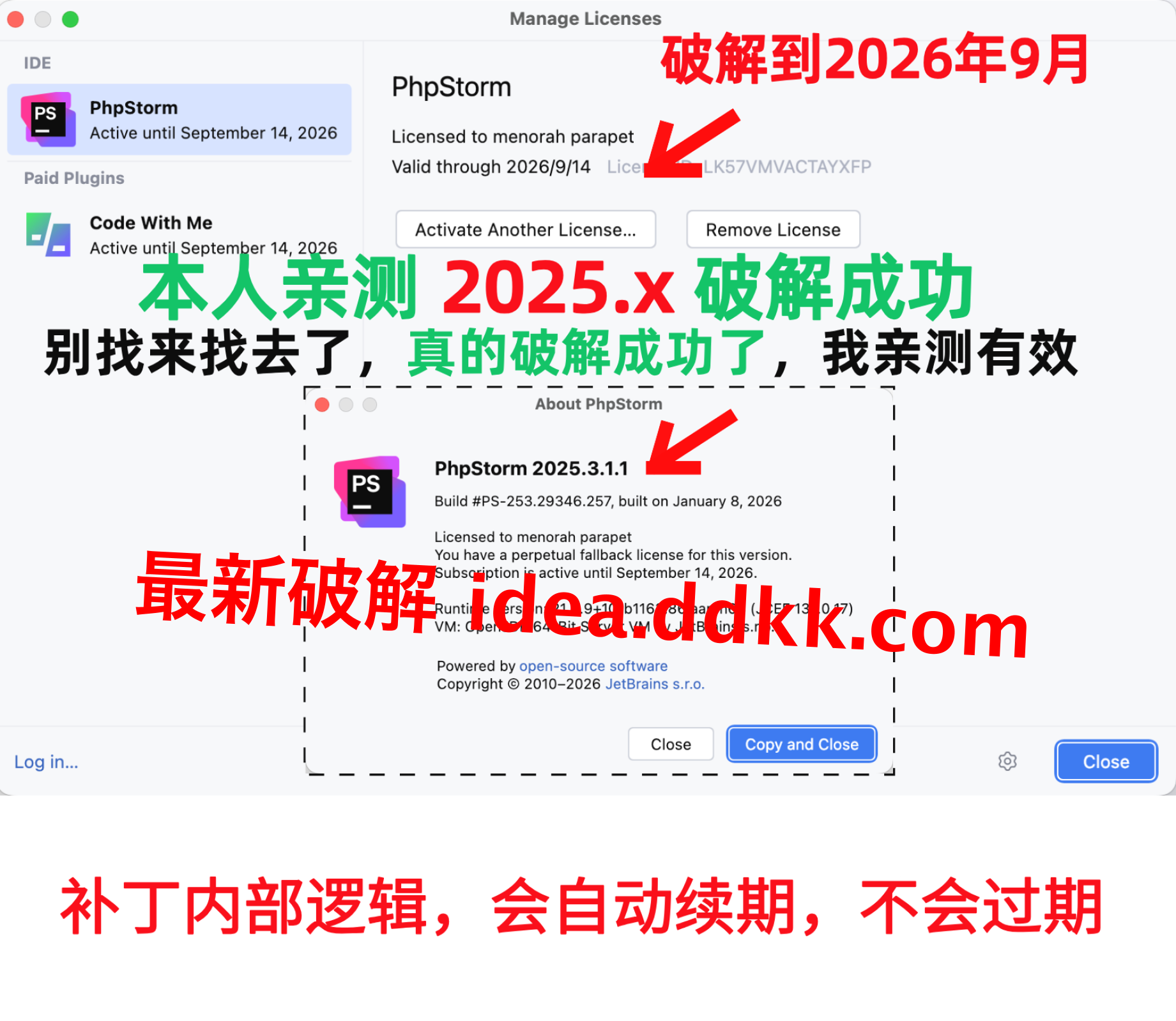 PhpStorm 2025.3.1.1 破解补丁,不要移动位置,不要删除【否则破解失败】