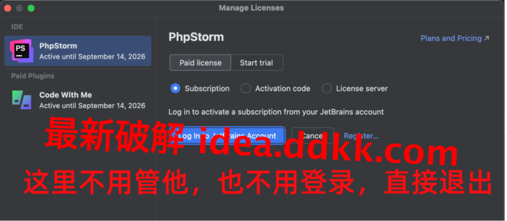 Jetbrains 每个产品,对应激活码都不一样
