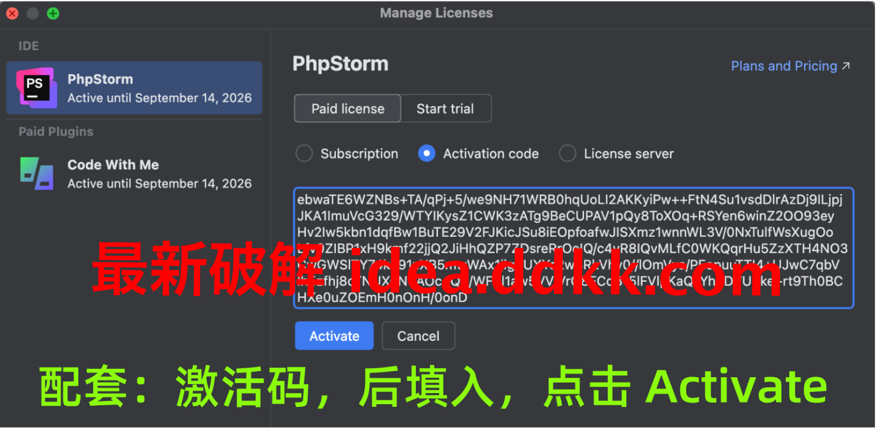 好了,补丁装好了,接下来就该输入激活码了。激活码这玩意儿,每个JetBrains产品都不一样,所以你得找到PhpStorm对应的激活码才行。