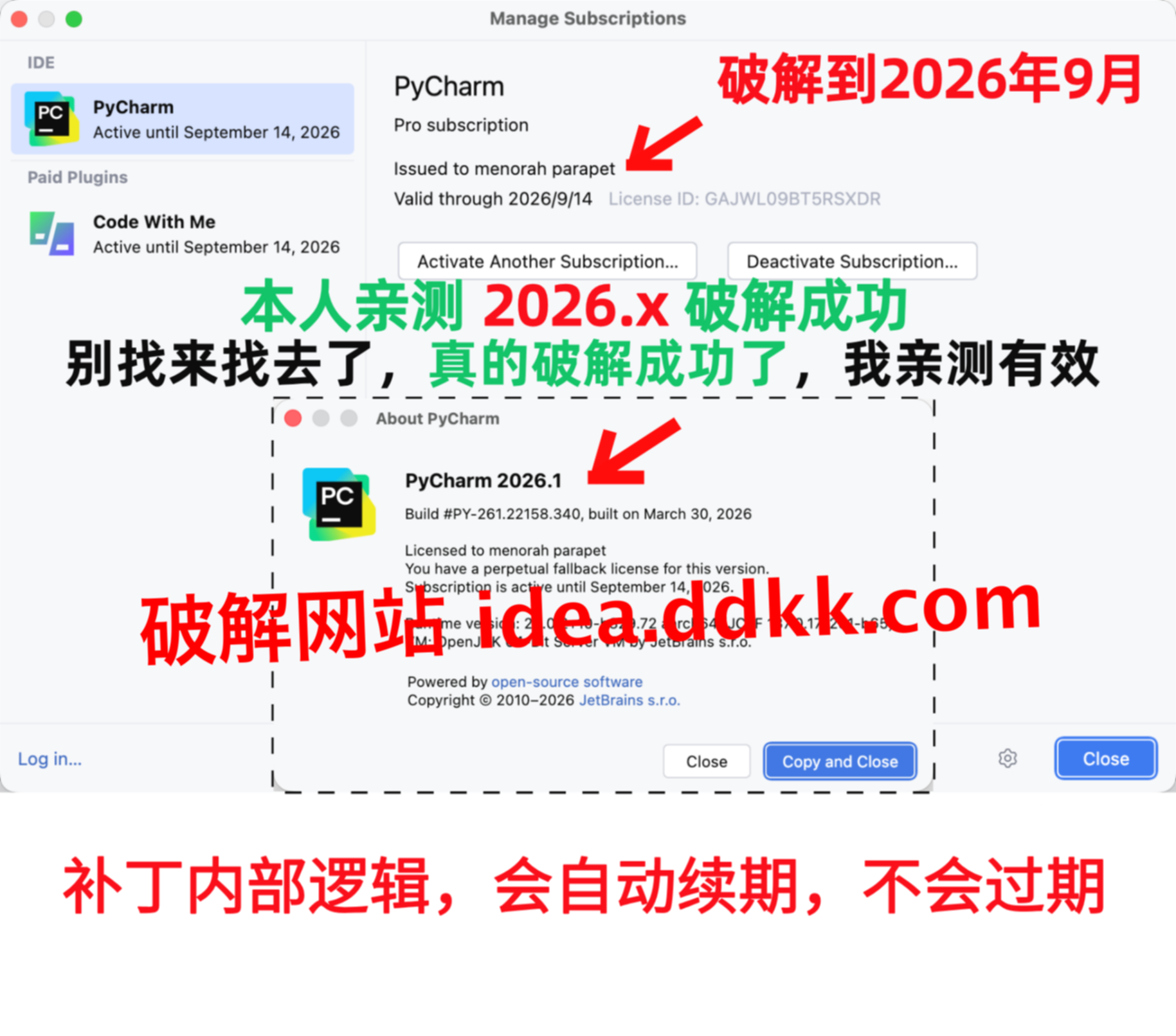 关注之后直接在对话框里回复 PyCharm 这个词,大小写不限,自动回复系统马上给你推链接,不用等人工,24小时都能拿。补丁我会跟着版本更新,2026.1对应的补丁就在这里,拿到就能用。