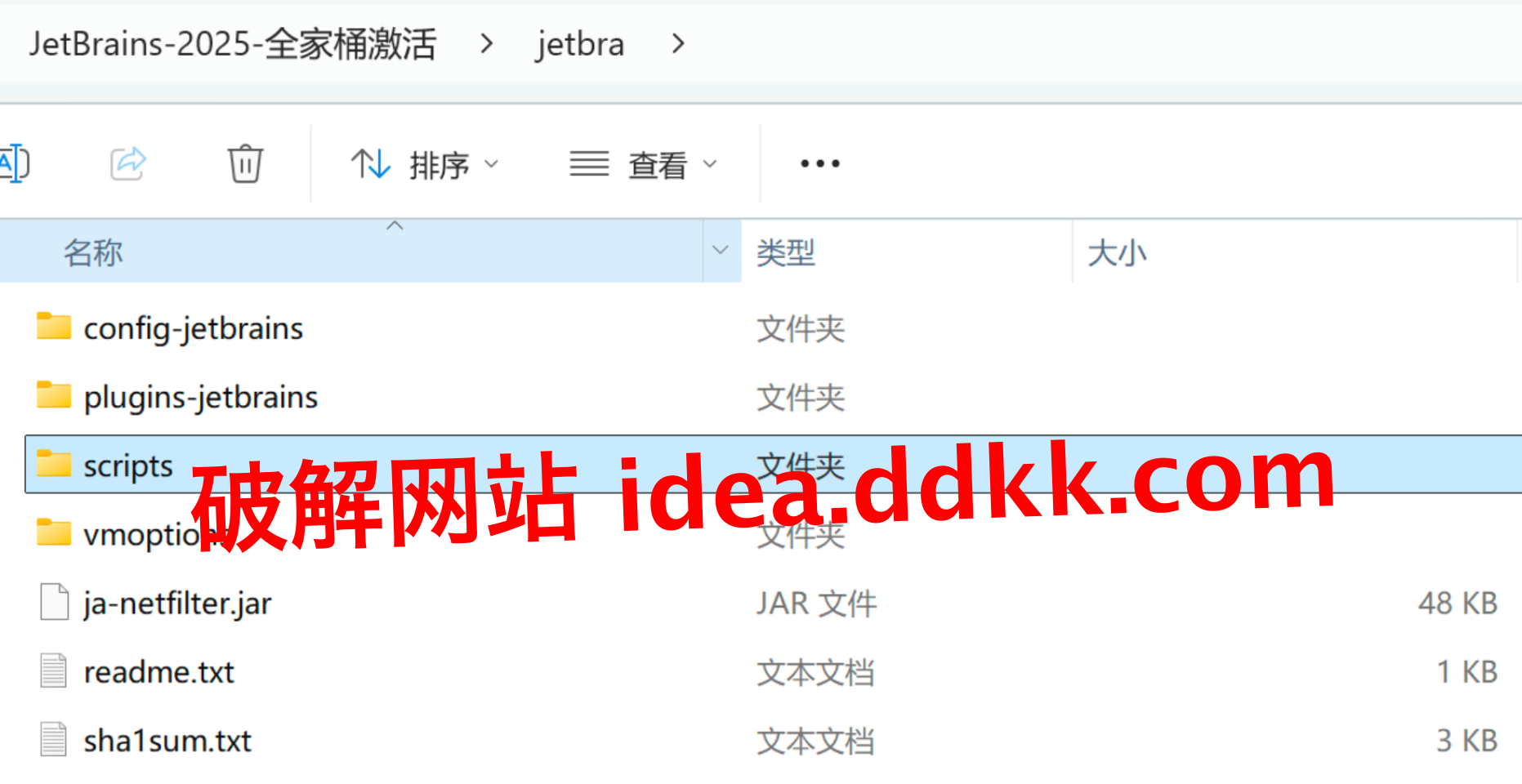 补丁包这东西,本质上是一个拦截JetBrains许可证校验的jar包,加上一批帮你自动配置的脚本。原理不用你搞明白,用就完了,但结构要清楚。
