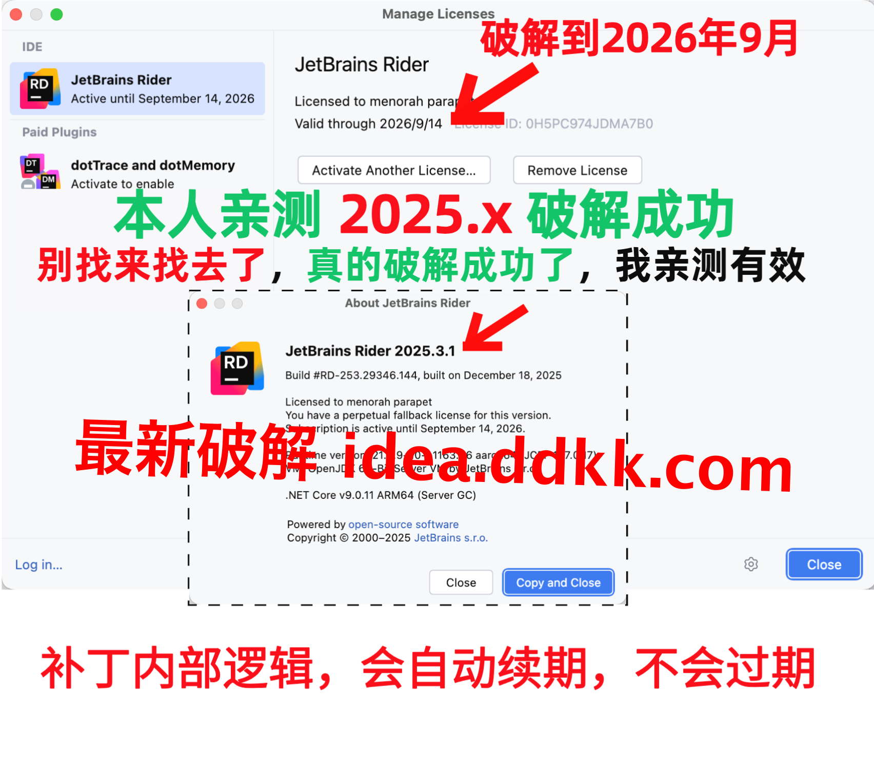 重要提醒:Rider 2025.3.1 的破解补丁文件位置不能动,也不能删除,否则破解会失效