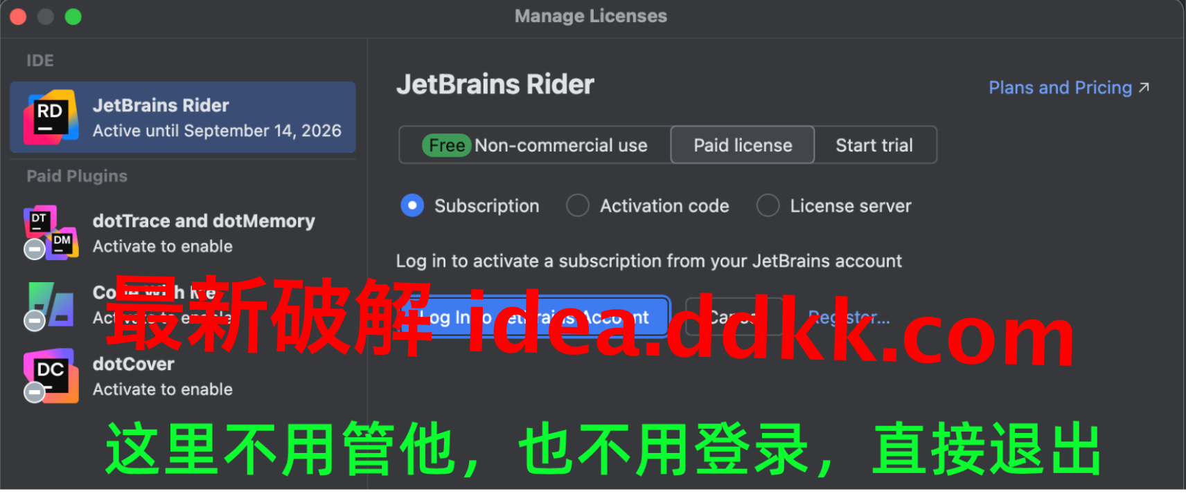Rider按装完成后,第一次启动会弹出登录界面,提示你要登录JetBrains账号