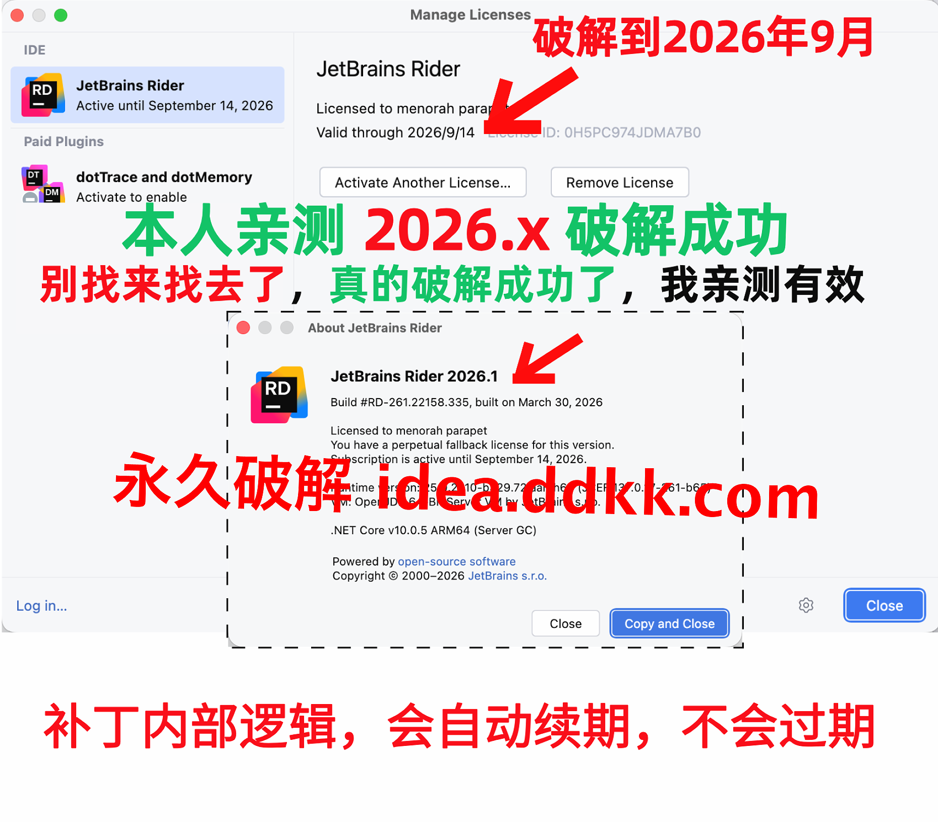 激活码确认完,Rider 2026.1破解就算彻底拿下了,License界面正常,.NET全家桶随便用。