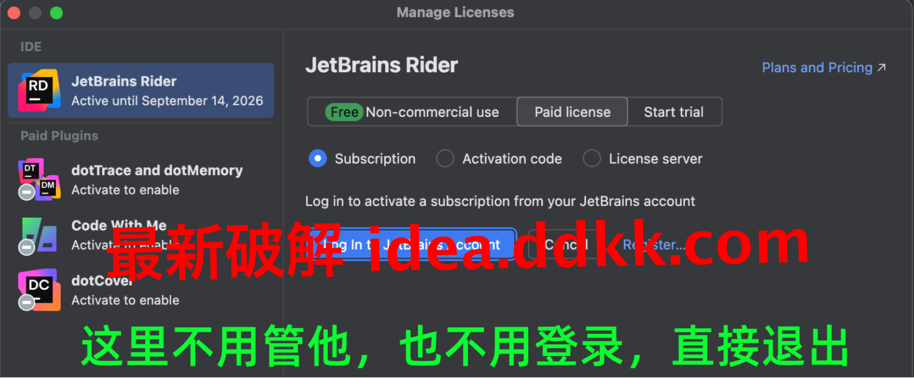第二步:Rider 装好启动,那个登录弹框是来收钱的,直接退