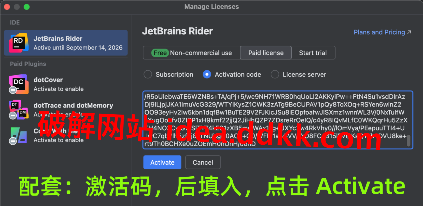 第六步:重新打开 Rider,填激活码