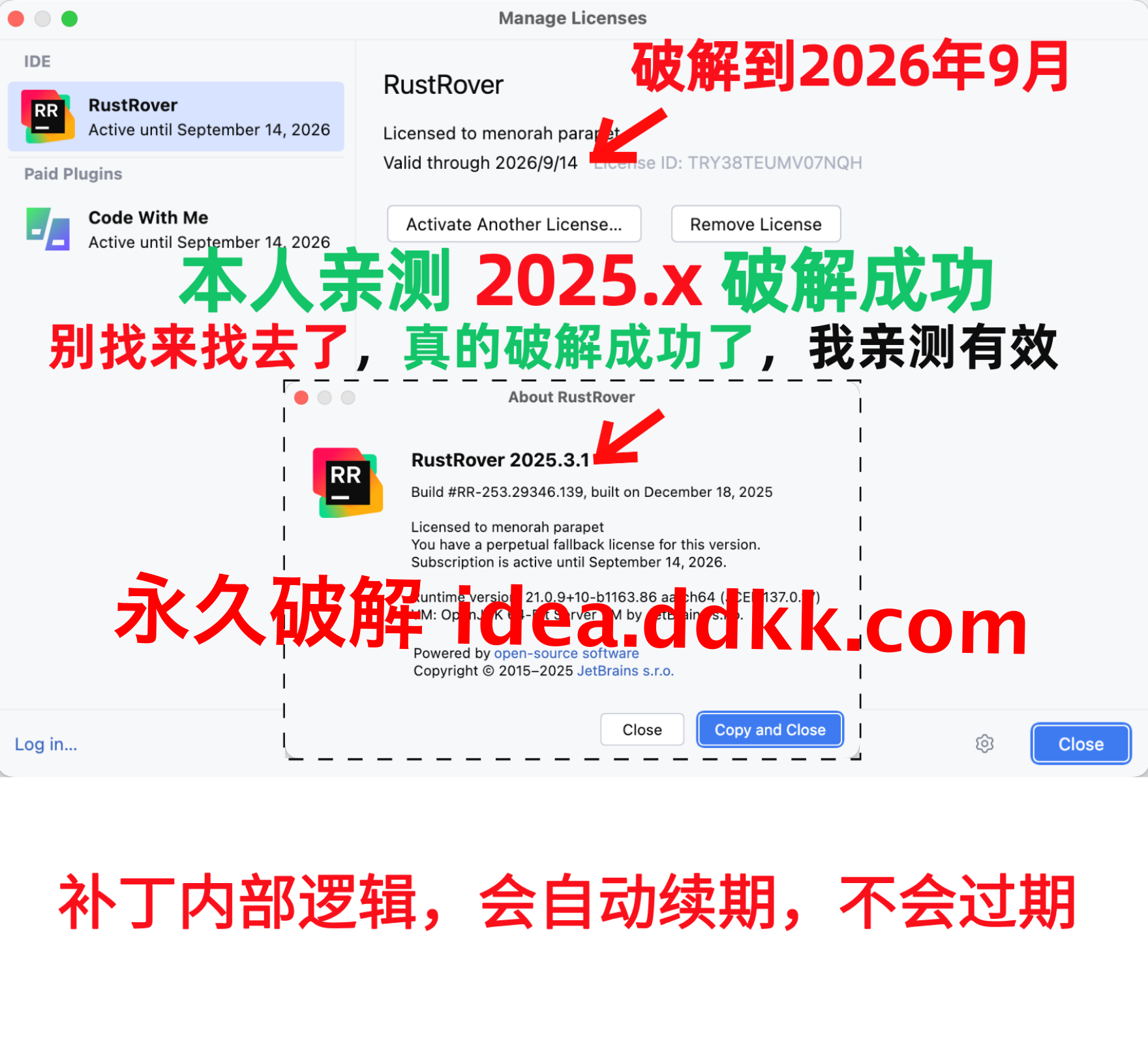 RustRover 2025.3.2 破解补丁,不要移动位置,不要删除【否则破解失败】