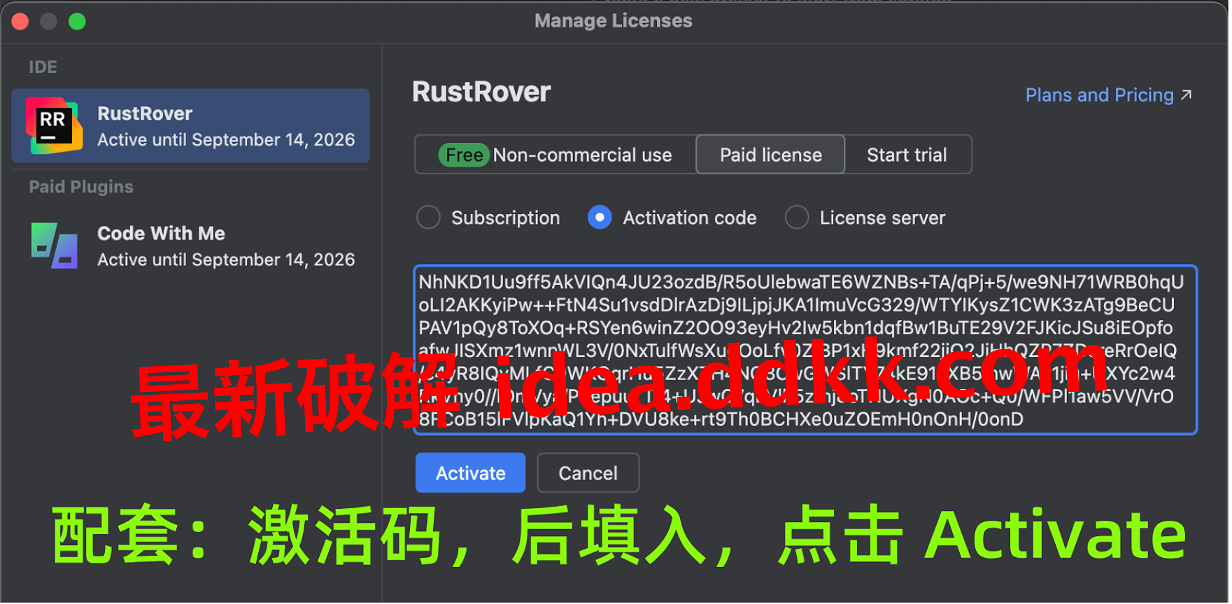 获取对应产品的激活码并输入,注意每个JetBrains产品的激活码都不一样