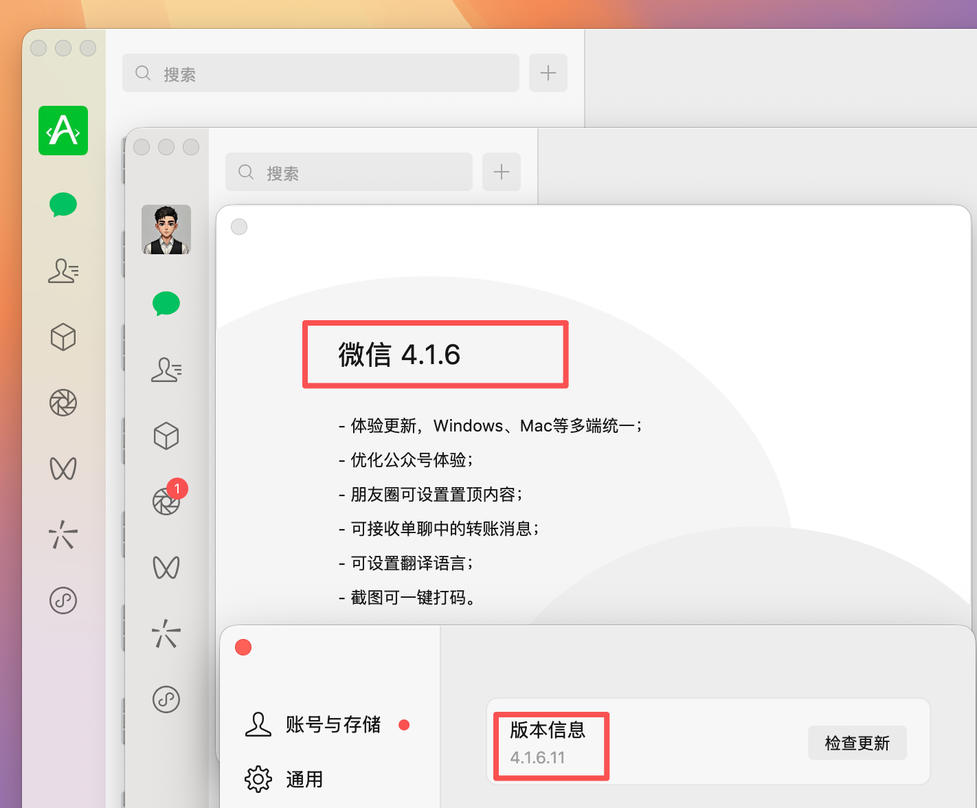 各位MacBook老铁们好,我是鹏磊;是不是刚把微信Mac版升级到最新的4.1.6.11版本,新功能玩得挺爽,结果发现还是不能同时等工作和生活号,整得贼闹心?这个破事儿我鹏磊之前也遇到过。
