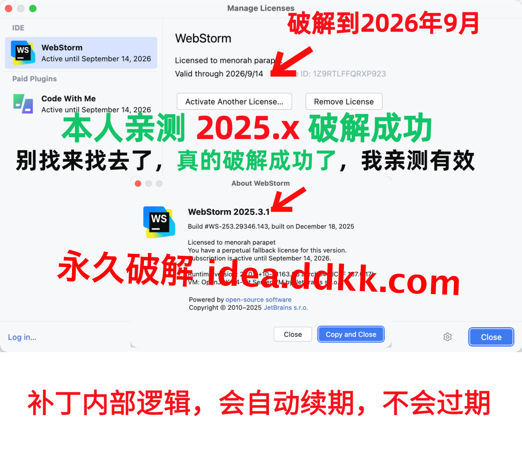 WebStorm 2025.3.1 破解补丁,不要移动位置,不要删除【否则破解失败】