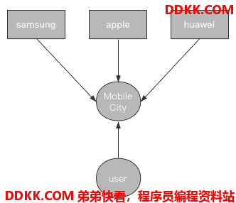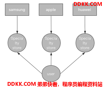 假如一个用户要买手机,他只需要考虑手机的品牌,型号,颜色等信息,而并不需要关心去那里买的问题,因为在手机城里各式各样的手机都应有尽有。