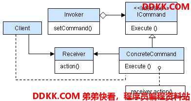 - 接收者,真正执行命令的对象。任何类都可能成为一个接收者,只要它能够实现命令要求实现的相应功能。