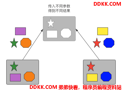 如图所示,为同一个模板传入不同的参数会得到不同的结果: