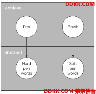 同时,不同的实体类型有不同的作用,如钢笔就写硬笔字(抽象),毛笔就写软笔字(抽象)。