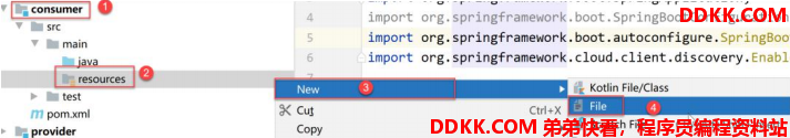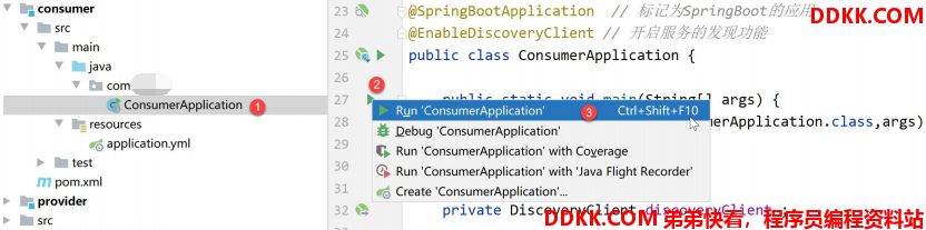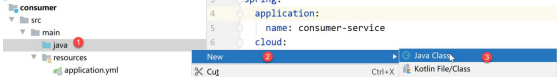 Consumer 现在还没有任何的启动类,我们需要给他添加一个