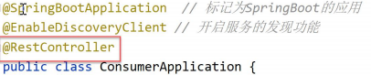 因为我们在启动类里面添加了接口,所以要必须添加@RestController 该注解来标记该类: