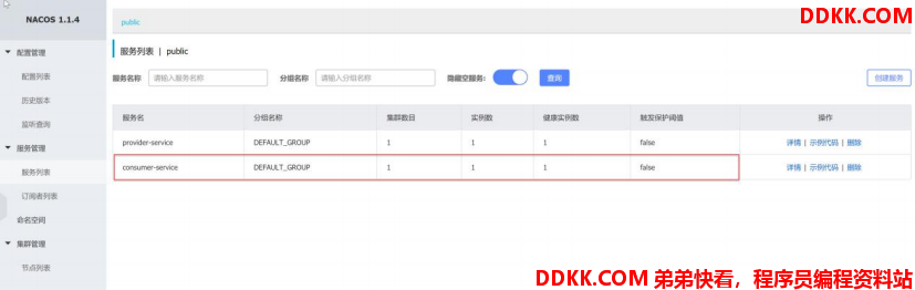 观察 consumer-service 是否成功的注册到了 Nacos 上面: