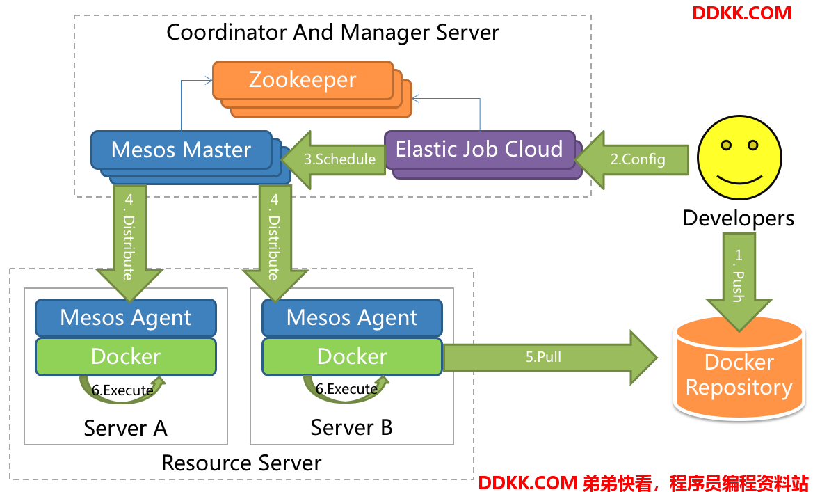 Elastic-Job-Cloud以私有云平台的方式提供集资源、调度以及分片为一体的全量级解决方案,依赖Mesos和Zookeeper。