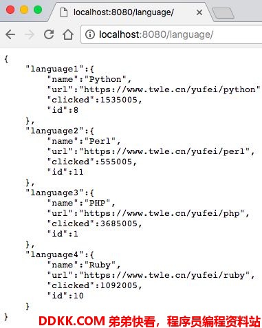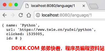 在浏览器中访问 http://localhost:8080/language/1,结果如下所示
