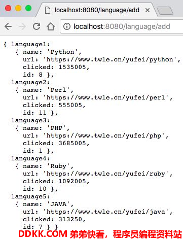 在浏览器中访问 http://localhost:8080/language,结果如下所示
