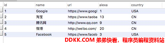 然后查看 MySQL node_site 数据库,可以看到 id=6 的记录已经删除了