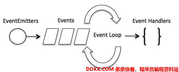 Node.js 每个异步事件都生成一个事件观察者,如果有事件发生就调用该回调函数