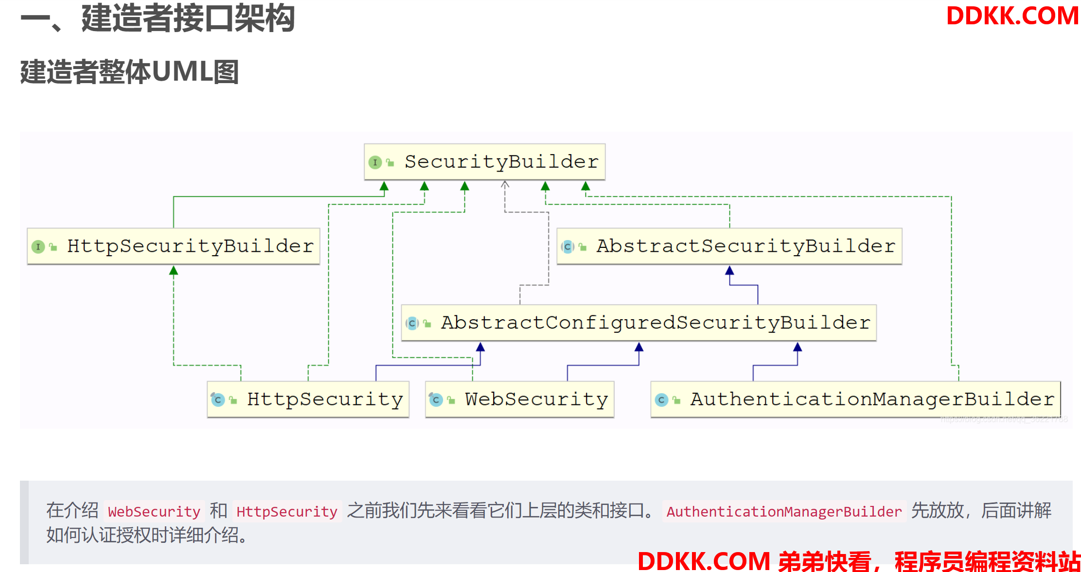 WebSecurity建造的是核心过滤器FilterChainProxy,HttpSecurity建造的是核心过滤器里的其中一条过滤器链,而AuthenticationManagerBuilder就是本次的主角了,它就是建造ProviderManager用的。(图片内容为之前文章截图)