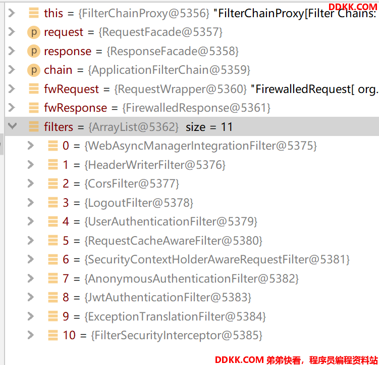 UserAuthenticationFilter)也是过滤器链中的一环,现在我们只关注这个过滤器是怎么走的,关于过滤器链上的其他过滤器我们后面文章慢慢分析。Demo中配置的过滤器链: