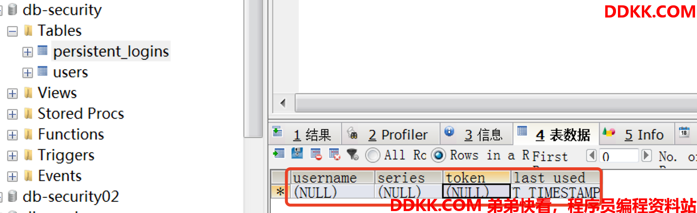 而且我们之前保存在persistent_logins表中的令牌信息也都被清除掉了,说明我们已经实现了退出登录功能了。