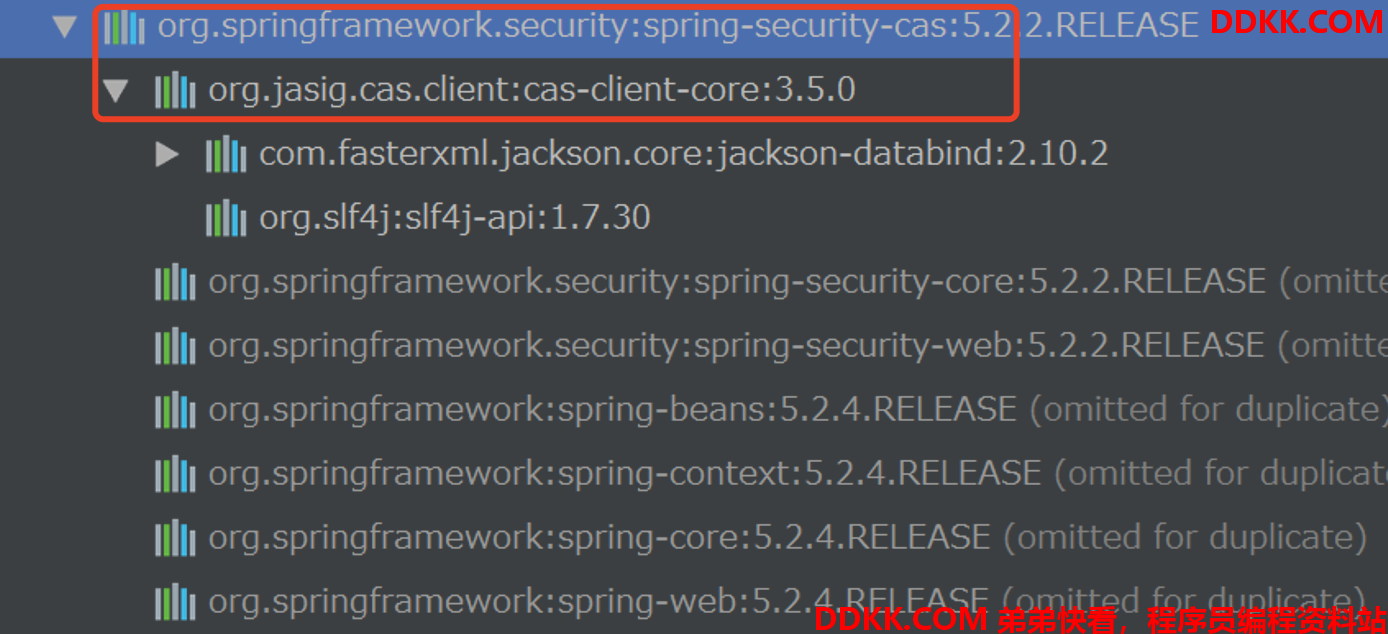 其中最主要的依赖是spring-security-cas,其内部依赖关系如下: