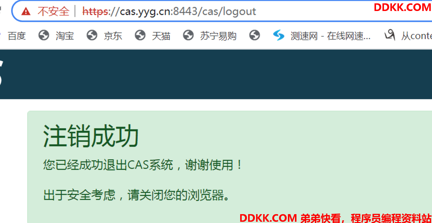 这时候我们可以通过请求https://cas.yyg.cn:8443/cas/logout地址,来执行单点注销,这样当一个CAS客户端项目退出后,CAS Server中其他所有的客户端也都注销了。