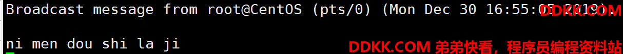wall(write all)给所有用户发信息。wall后直接加要发的信息就可以发送出去,此时包括发送者在内的所有人都会收到信息,还会显示发消息的用户名和发消息的时间。