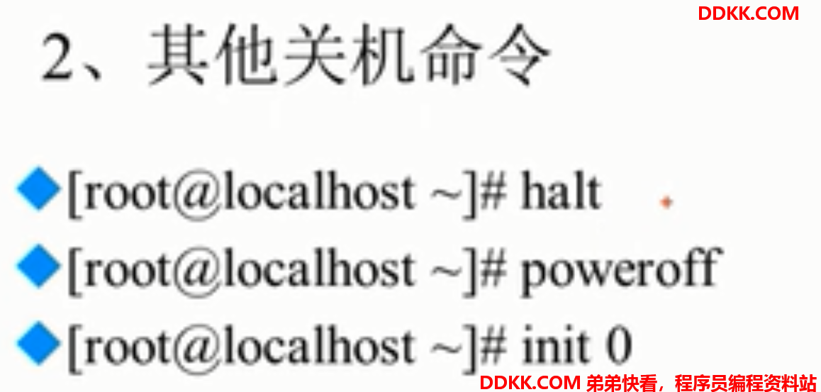 init 0代表关机命令,但是它不会保存正在运行的服务,并不安全。init 6代表重启。