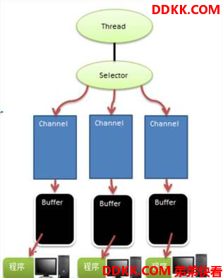 2、 Selector会对应一个线程,一个线程对应多个Channel(连接);