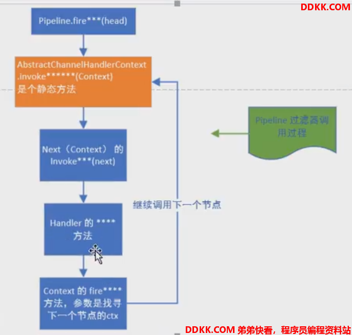 - pipeline 首先会调用 Context 的静态方法 fireXXX,并传入 Context