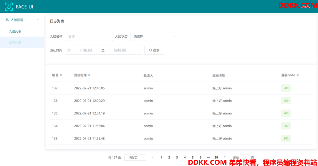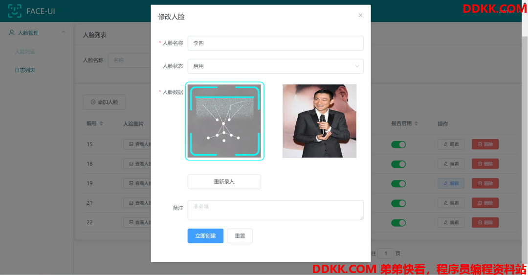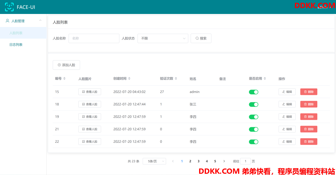 技术点:SpringBoot,MySql,JWT,VUE 2.X 等等技术实现,主要功能点:人脸列表CRUD,日志列表CRUD,基于自建人脸库通过base64编码方式存储人脸图片,通过调用腾讯云人脸对比API场景实现