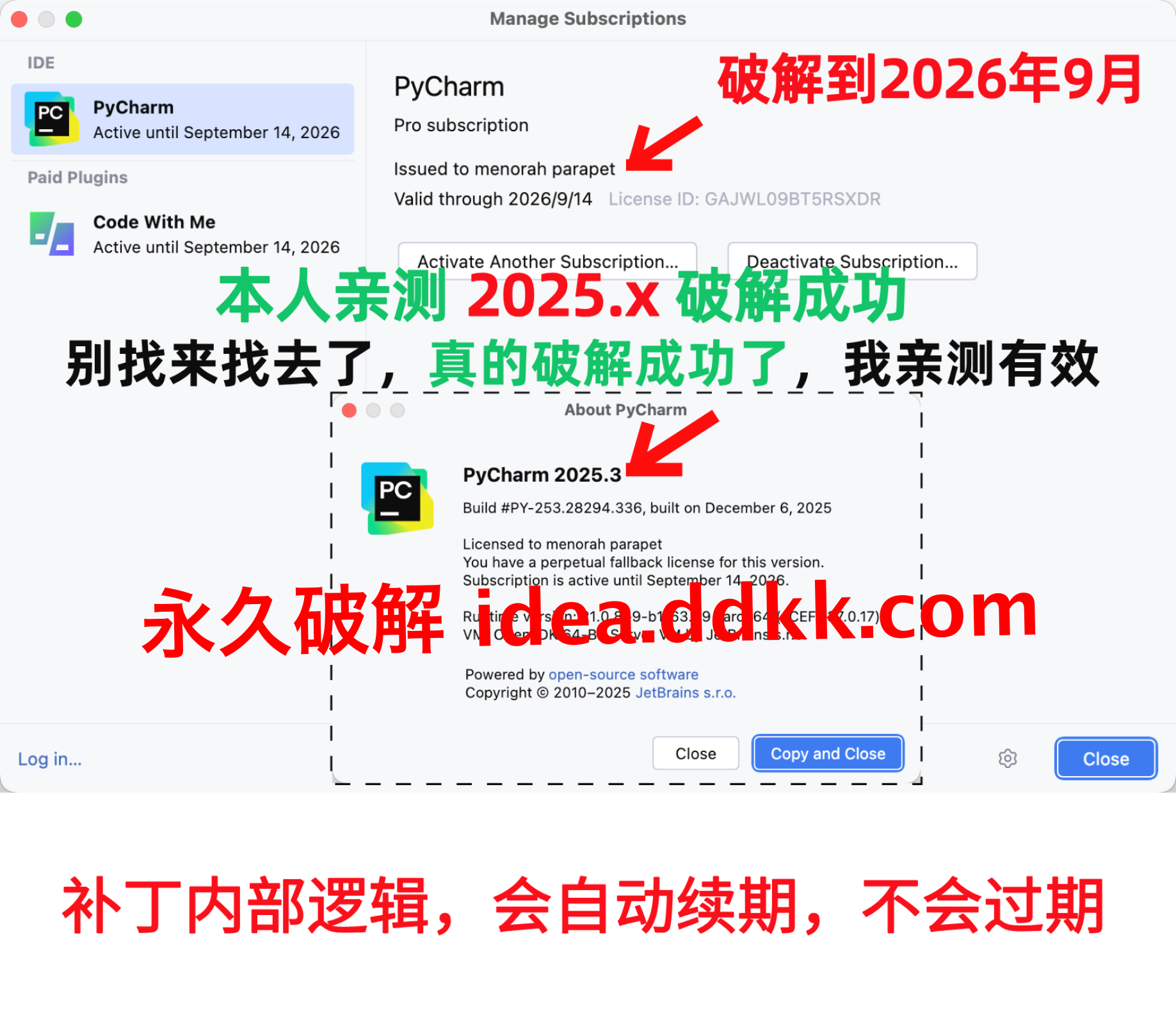 PyCharm 2025.3 破解补丁,不要移动位置,不要删除【否则破解失败】
