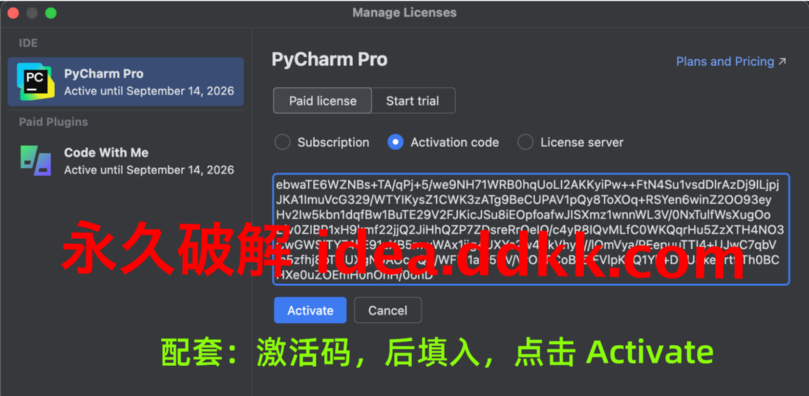 安装完成后,补丁就已经注入到PyCharm的配置文件里了。接下来就是输入激活码的环节了。