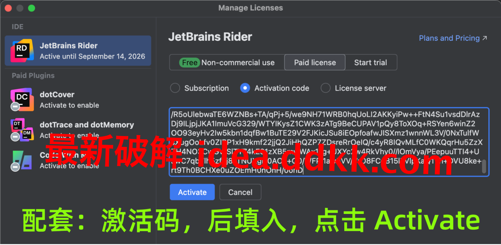 补丁装好之后,重启Rider,然后在激活界面输入对应的激活码;输入完成之后,如果看到激活成功的提示,那就说明破解搞定了;这时候你就能看到激活状态显示正常,可以正常使用所有功能了