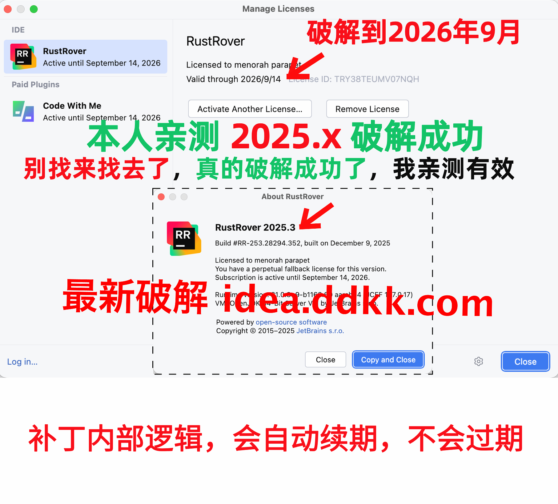 RustRover 2025.3的破解补丁文件,装好后千万别挪地方,也别删【一删就失效了】