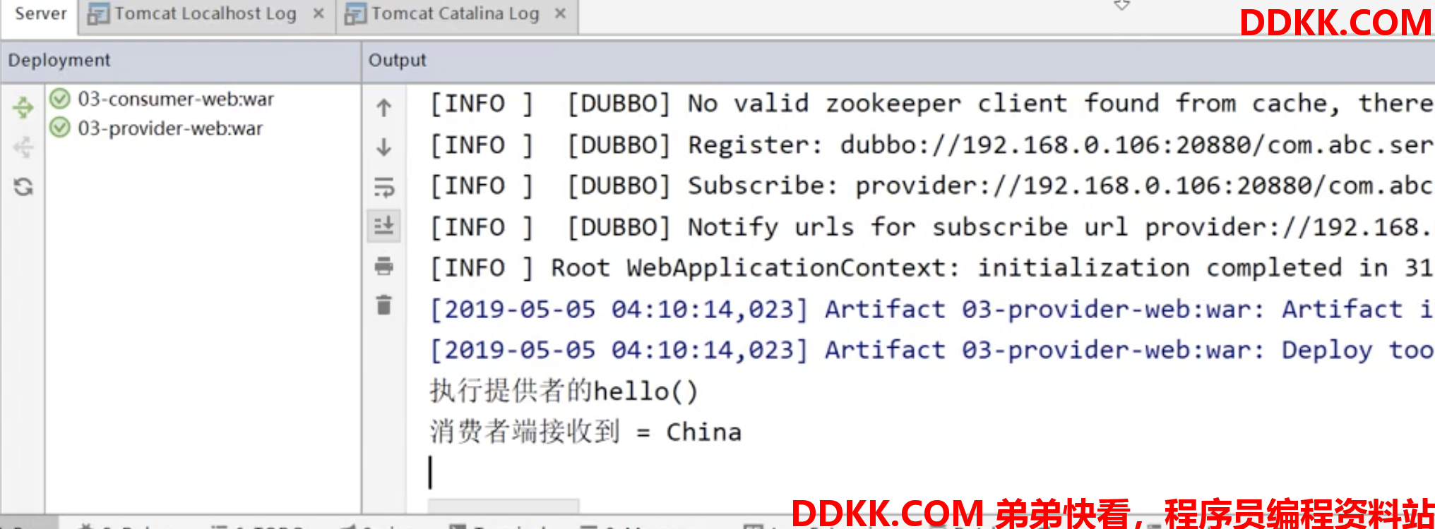 为了方便部署测试,这里将提供者与消费者部署到一个 Tomcat 中。