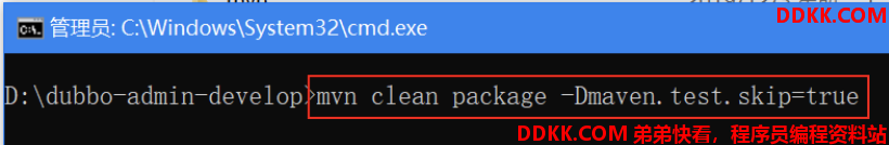 在命令行窗口中进入到解压目录根目录,执行打包命令,跳过 test 阶段。
