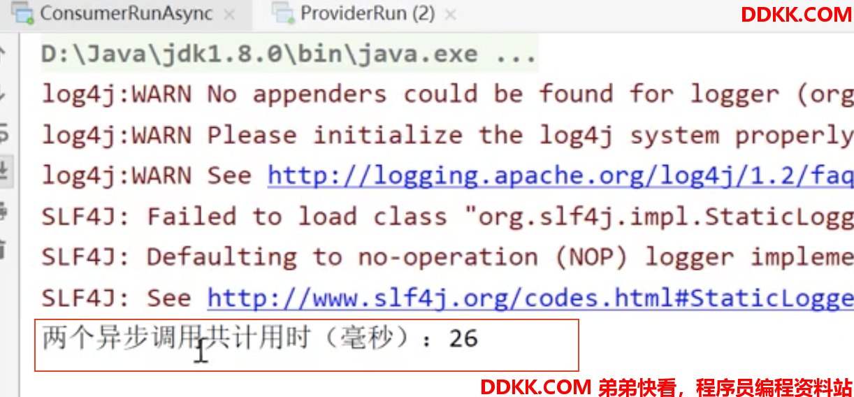 System.out.println("两个异步调用共计用时(毫秒):" + syncInvokeTime);