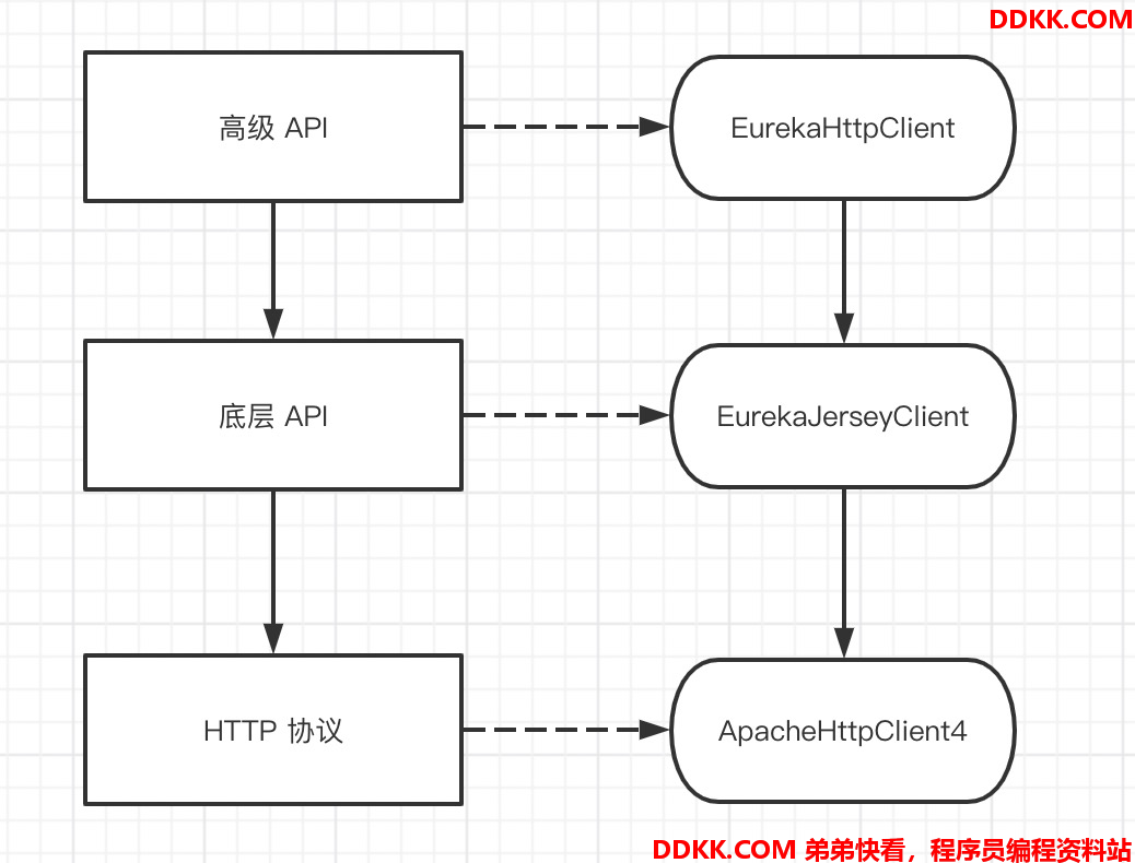 对于高阶 API,主要是通过装饰器模式进行一系列包装,从而创建目标 EurekaHttpClient。而关于低阶 API 的话,主要是 HTTP 远程调用的实现,Netflix 提供的是基于 Jersey 的版本,而 对于 HTTP 协议的调用 Eureka 封装了 Apache 提供的 HttpClient 4。