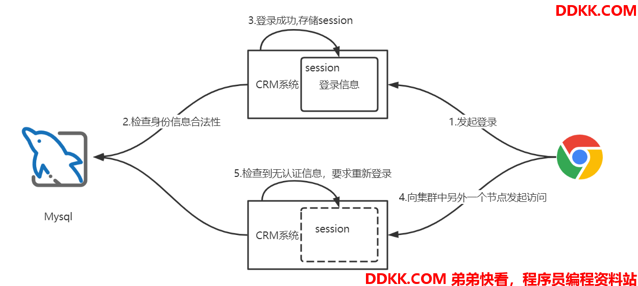 对于登录而言,通常情况下我们喜欢把登录信息存储到服务器的Session中,这种存储方式在单体应用中没有问题,但是在分布式/集群环境中会存在Session丢失问题,如下图: