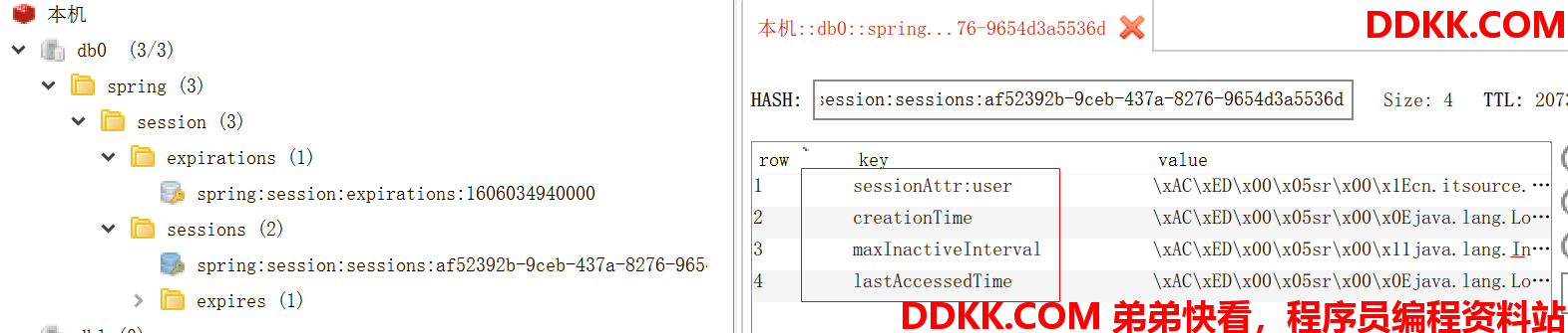上面的代码很简单,使用session存储一个user , 启动好Redis服务器,使用Postmain访问 /login ,观察Redis中的数据